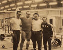 Юрий Власов со своим тренером Суреном Богдасаровым и один из сильнейших атлетов мира аргентинец Умберто Сальветти с тренером. 1963 год (Комментарий Воробьёва А.Н.)