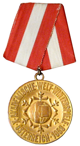 Золотая медаль Виктора Шувалова – члена советской сборной по хоккею, победительницы X Международных зимних студенческих игр 1953 года в Австрии