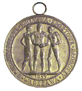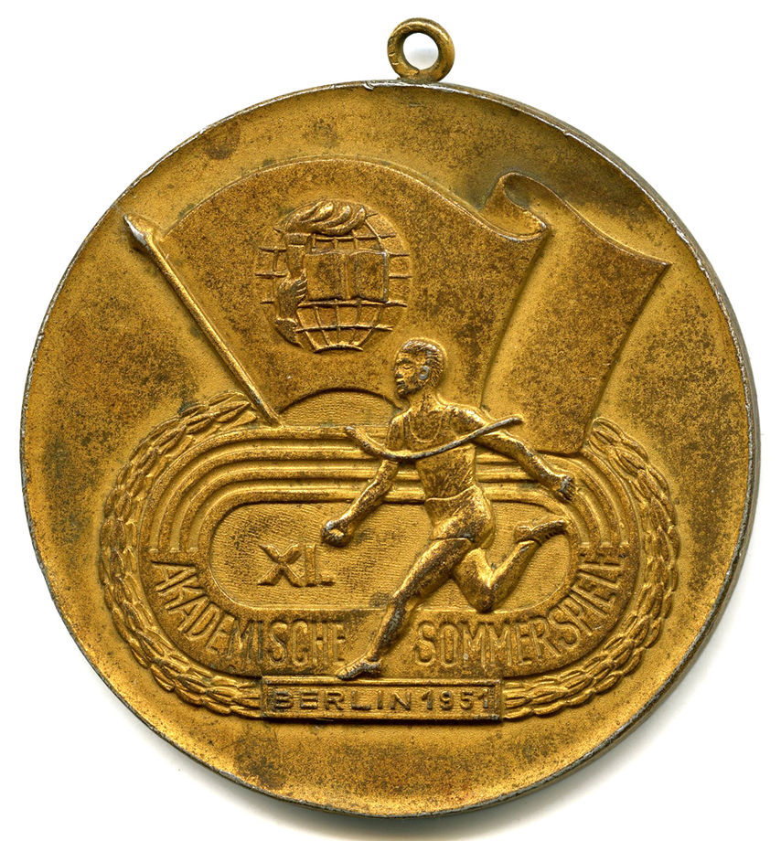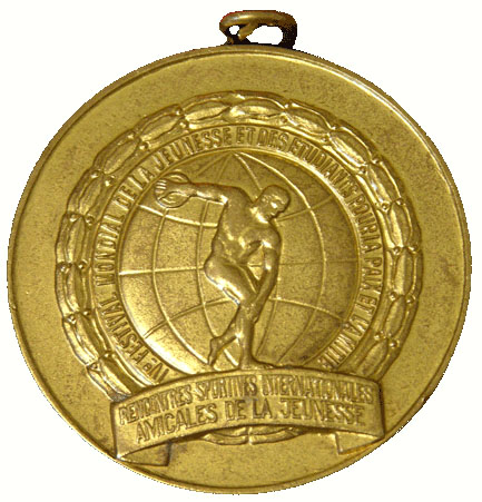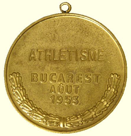 Золотая медаль Нины Пономарёвой – победительницы соревнований по метанию диска легкоатлетического турнира на летних Студенческих играх 1953 года (IV Всемирный фестиваль молодёжи и студентов в Бухаресте, Румыния)