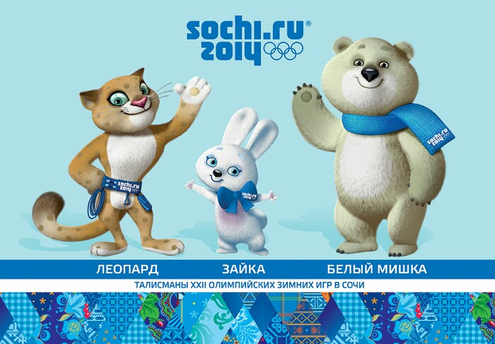 Плакаты, талисманы и наградные медали XXII Олимпийских зимних игр 2014 года в Сочи XXII Олимпийские зимние игры 2014 года в Сочи (Россия). 7 – 23 февраля. Впервые страной проведения Олимпийских зимних игр стала Россия. Эмблема сочинских Игр являет собой сочетание главного олимпийского символа – пяти переплетённых колец, и знака современности – электронного адреса, отражая тем самым дух этих соревнований. ЛОСКУТНОЕ ОДЕЯЛО – визуальный образ XXII Олимпийских зимних игр в Сочи разработан творческим коллективом компании «Bosco». Каждый из лоскутков представляет один из орнаментов 16-ти самых известных национальных промыслов России: устюжскую роспись и вологодское кружево, гжель и жостовскую эмаль, кубачинские узоры и цветы павловопосадских платков, мезенскую роспись и хохлому, якутские узоры, ивановский ситец и другие характерные русские узоры. Талисманами XXII Олимпийских зимних игр были выбраны леопард, зайка и белый мишка