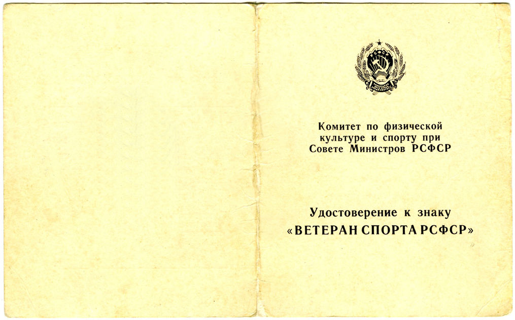 Удостоверение к знаку «Ветеран спорта РСФСР» 4 июля1985 года