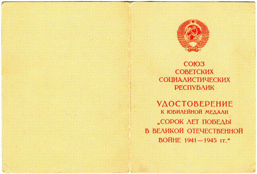 Медаль «Сорок лет победы в Великой Отечественной войне 1941 – 1945 гг.» 1985 год