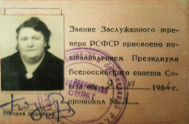 Документ о присвоении Марии Михайловне Борисовой звания «Заслуженный тренер РСФСР». 9 июня 1964 года