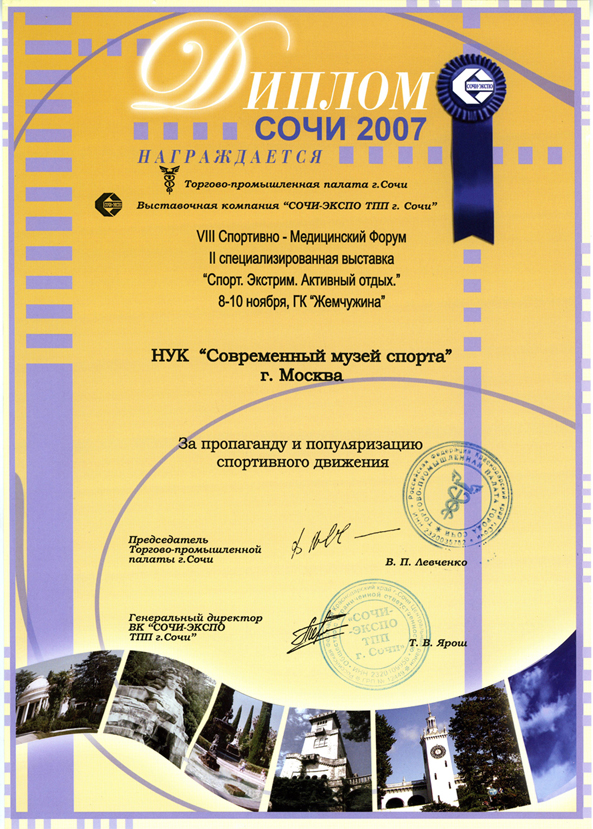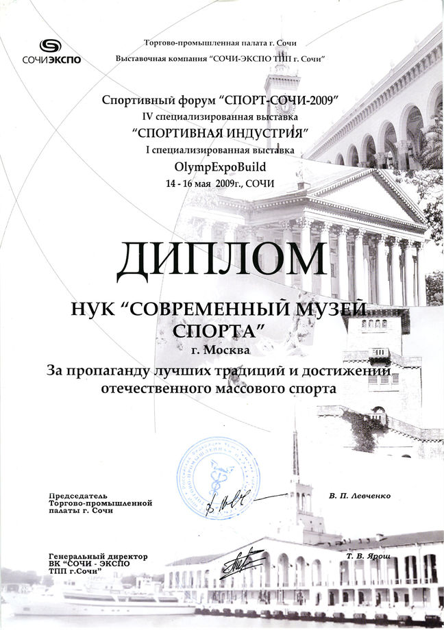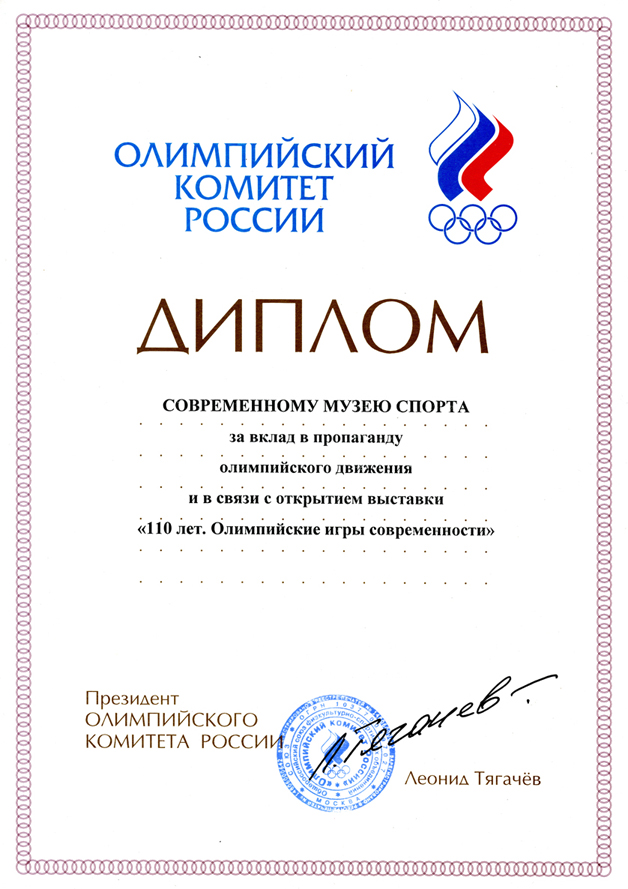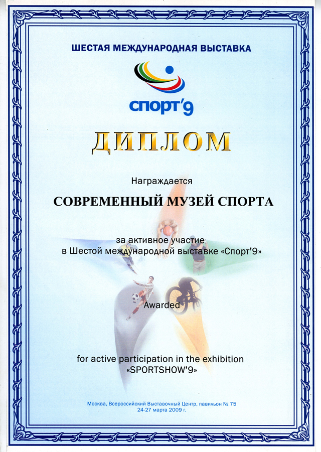 Диплом Современному музею спорта за вклад в пропаганду