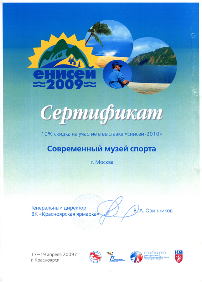 Сертификат участнику выставки «Енисей-2010»