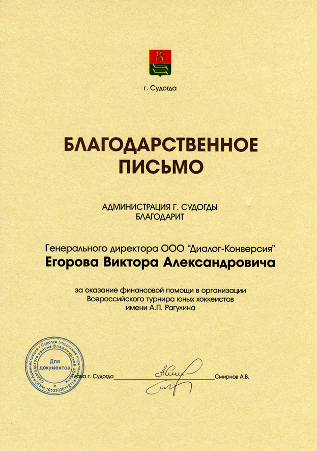 Диплом Егорову Виктору Александровичу