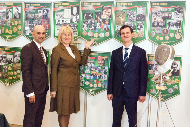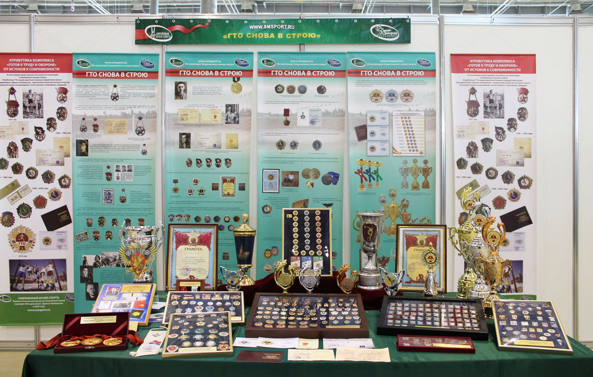 I Фестиваль современной спортивной индустрии, организатором которого выступил учредитель музея – Объединение «Диалог-Конверсия», состоялся в Москве на ВДНХ с 22 по 24 марта 2017 года. Современный музей спорта представил 6 коллекций  «Гордость отечественного спорта» – 38 персональных штандартов прославленных отечественных спортсменов и исторические экспонаты. Заместитель Министра спорта РФ Марина Владимировна Томилова, Генеральный директор АНО «Дирекция спортивных и социальных проектов» – федерального оператора ВФСК ГТО – Азат Рифгатович Кадыров и заместитель директора Объединения «Диалог-Конверсия» Константин Юрьевич Волчинский осматривают экспозицию.
