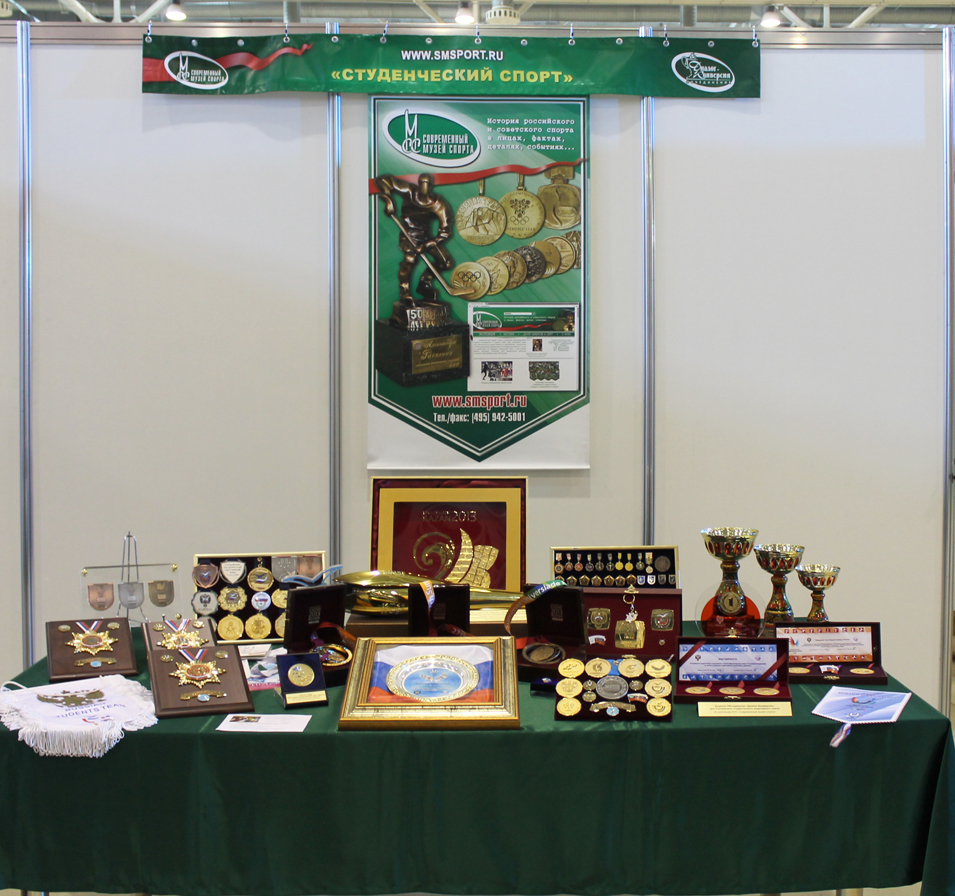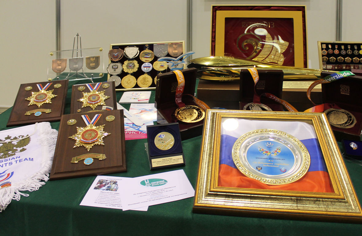 Тема «Студенческий спорт» представлена экспонатами Всемирных и российских Универсиад.