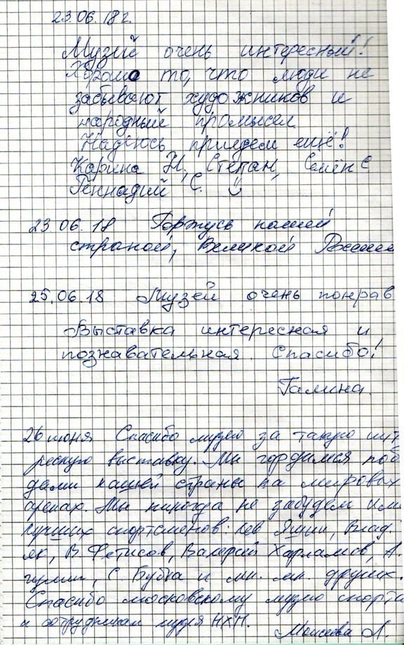 В книге отзывов оставлено много восторженных оценок и пожеланий.