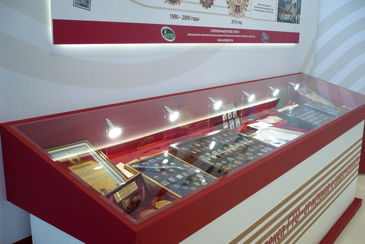 В экспозиции Современного музея спорта представлены исторические знаки комплекса ГТО (с 1931 года) и спортивные классификационные знаки советского периода