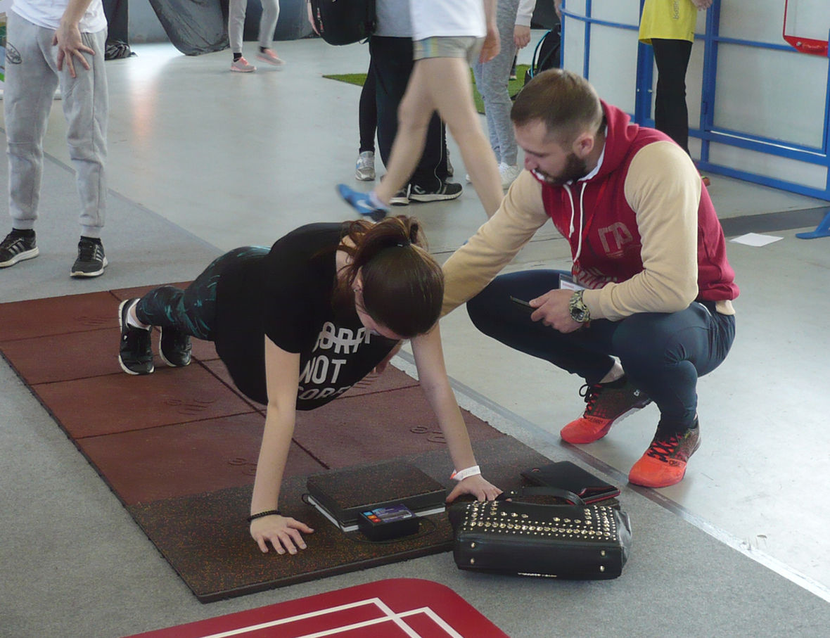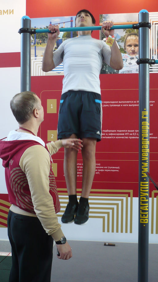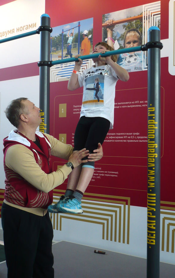 Многочисленные организованные группы молодёжи и индивидуальные желающие разных возрастов могли прямо на выставке попробовать свои силы в выполнении испытаний современного комплекса ГТО